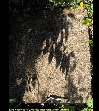 © 2000-2026 Oklahoma CemeteriesThe information on this site is provided free for the purpose of researching your genealogy. This material may be freely used by non-commercial entities, for your own research, as long as this message remains on all copied material. The information contained in this site may not be copied to any other site without written "snail-mail" permission. If you wish to have a copy of a donor's material, you must have their permission. All information found on these pages is under copyright of Oklahoma Cemeteries. This is to protect any and all information donated. The original submitter or source of the information will retain their copyright. Unless otherwise stated, any donated material is given to Oklahoma Cemeteries to make it available online. This material will always be available at no cost, it will always remain free to the researcher.