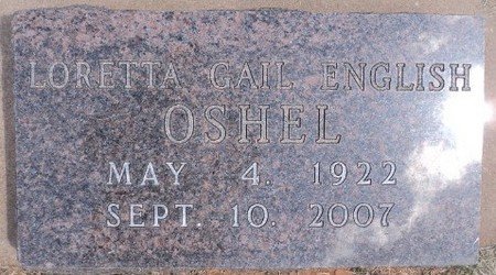Loretta Gail Oshel, daughter of Pearl Rose English and Frank Marion English, was born May 4, 1922, in her grandparent’s home in Waynoka, OK and died Monday, Sept. 10, 2007, at her home of 55 years in Alva, OK.