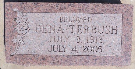The funeral for Dena Ellen Terbush, 92, of Alva, will be 2 p.m. Friday at First United Methodist Church Chapel. The Rev. Terry Martindale will officiate. Burial will be in Alva Municipal Cemetery. Arrangements are by Wharton Funeral Chapel, Alva.She was born July 3, 1913, in Clear Lake to Alma Fanny Salman and Nevin Ward Gra-ham and died Monday, July 4, 2005, at Saint An-thony Hos-pital, Oklahoma City.