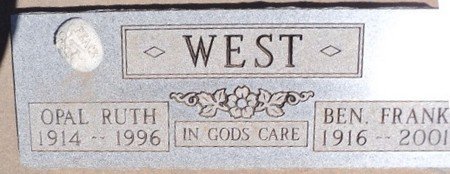 Opal Ruth and Benjamin Frank WEST